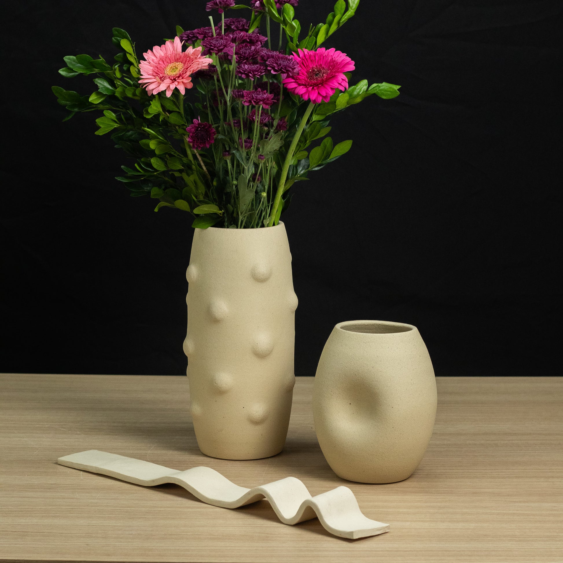 Produzida artesanalmente em cerâmica, a Escultura Dunas é feita manualmente, peça a peça, sem o uso de moldes industriais. O processo artesanal confere variações sutis de forma, textura e acabamento, tornando cada peça única.