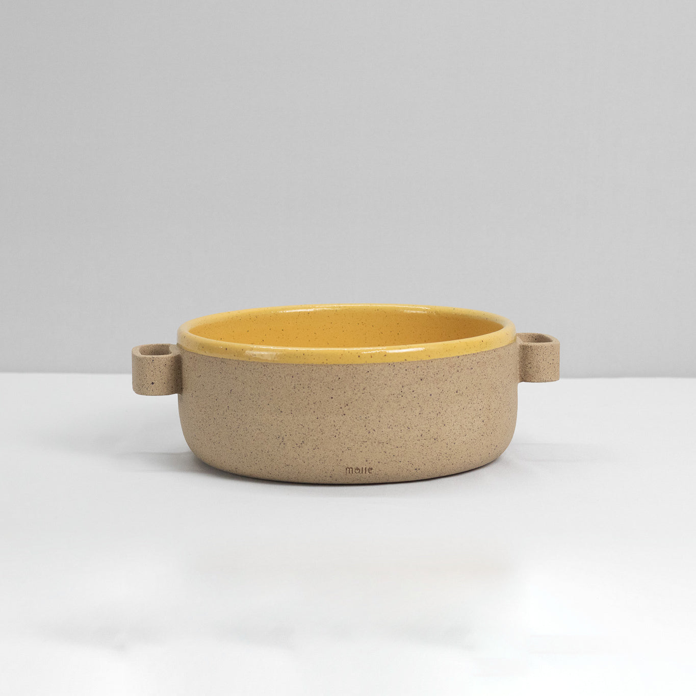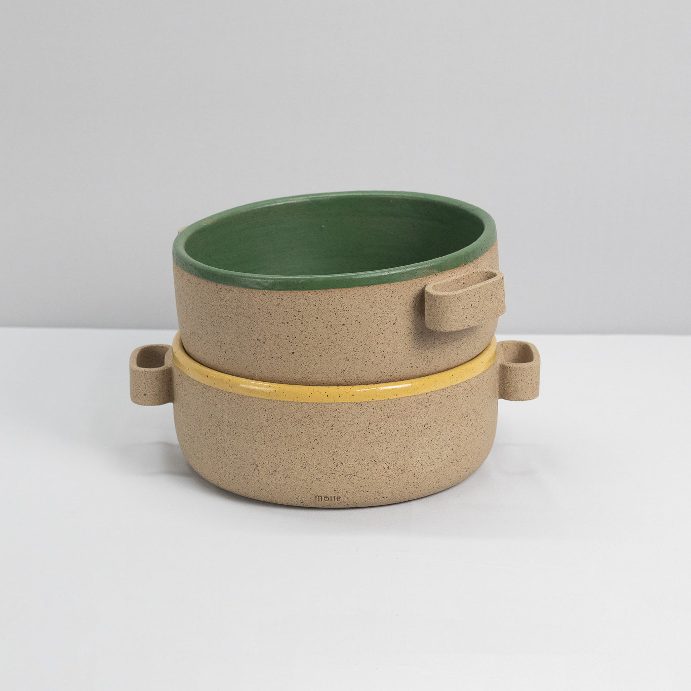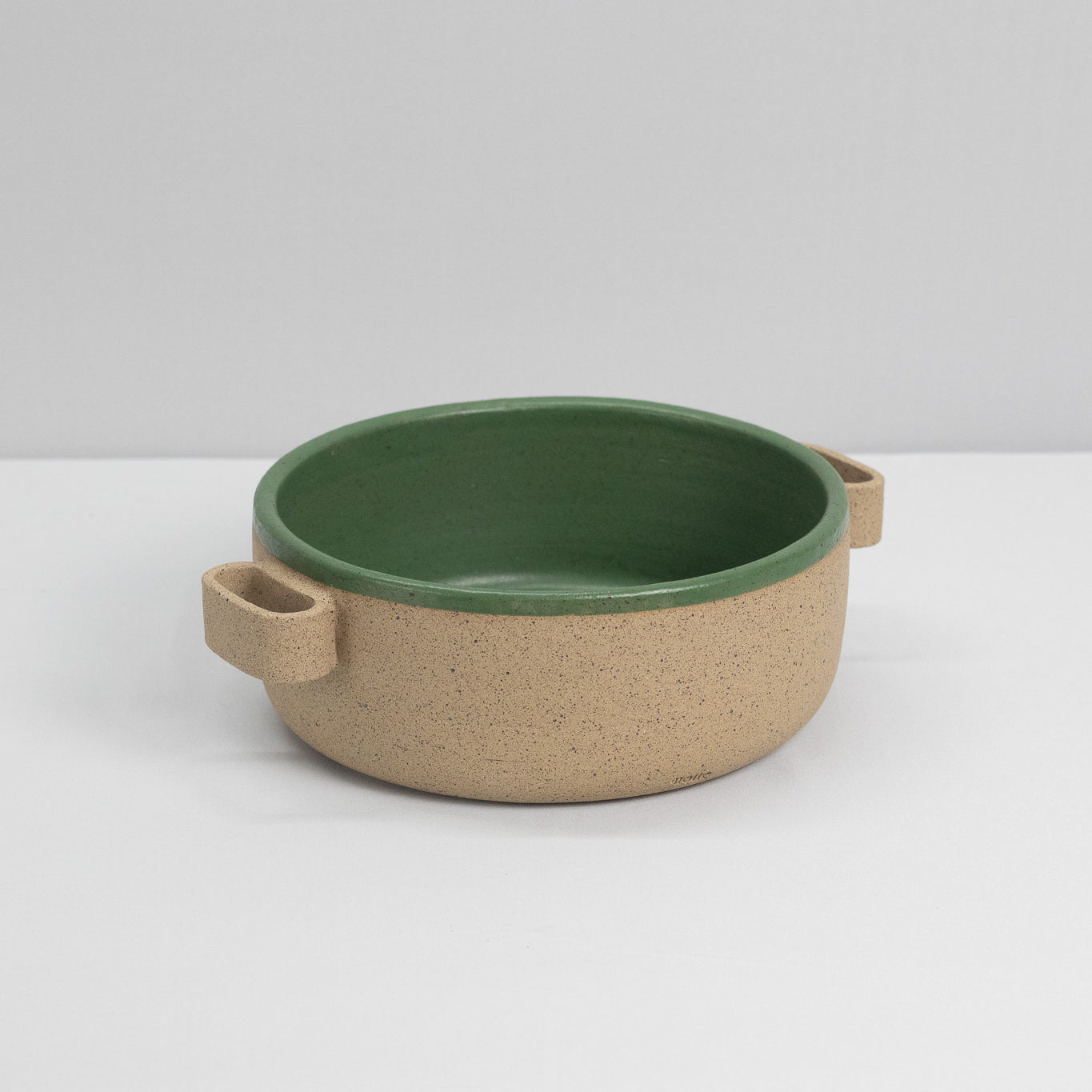 Produzida artesanalmente em cerâmica, a Travessa Molle é feita manualmente, peça a peça, sem o uso de moldes industriais. A cerâmica nua evidencia o processo artesanal e a materialidade da argila, resultando em variações sutis de forma, textura e tonalidade.